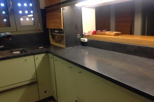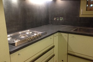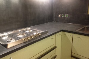 Ανακαίνιση Πάγκου κουζίνας απο πάλία τσιμεντοκονία και πλάτη απο πλακάκια με Concrete Collection 6000N satine