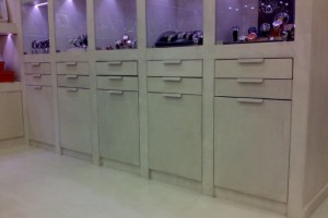 Κοσμηματοπωλείο ανακαίνιση, με εφαρμογή πατητή τσιμεντοκονία Concrete Collection απευθείας σε έπιπλα, δάπεδα.